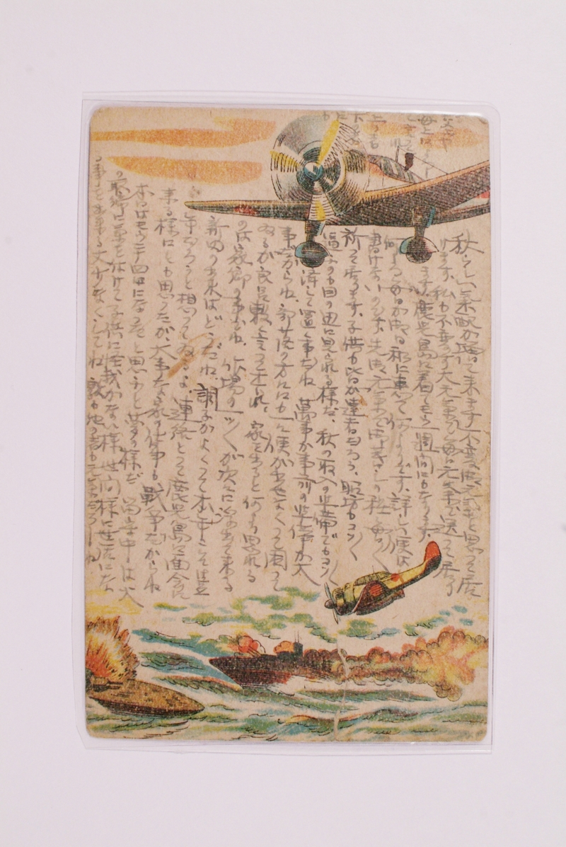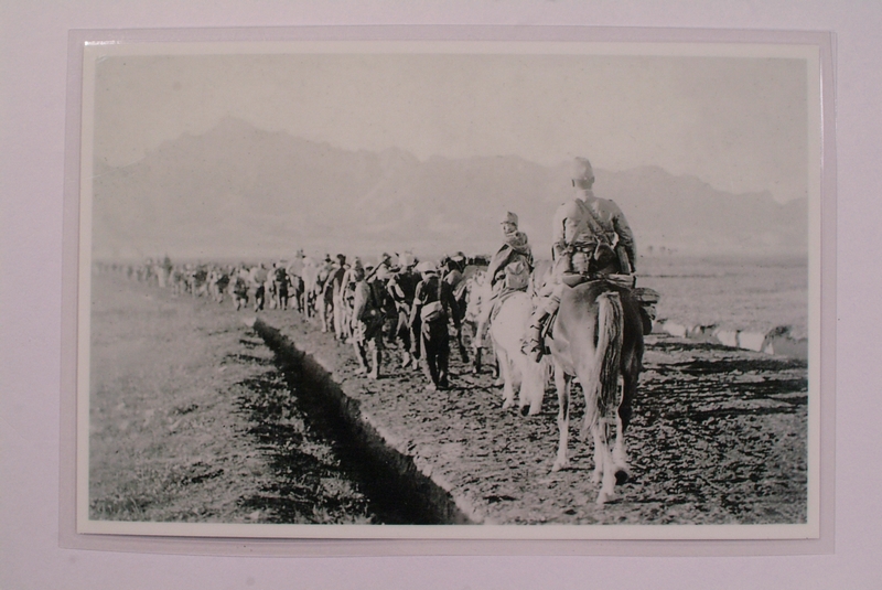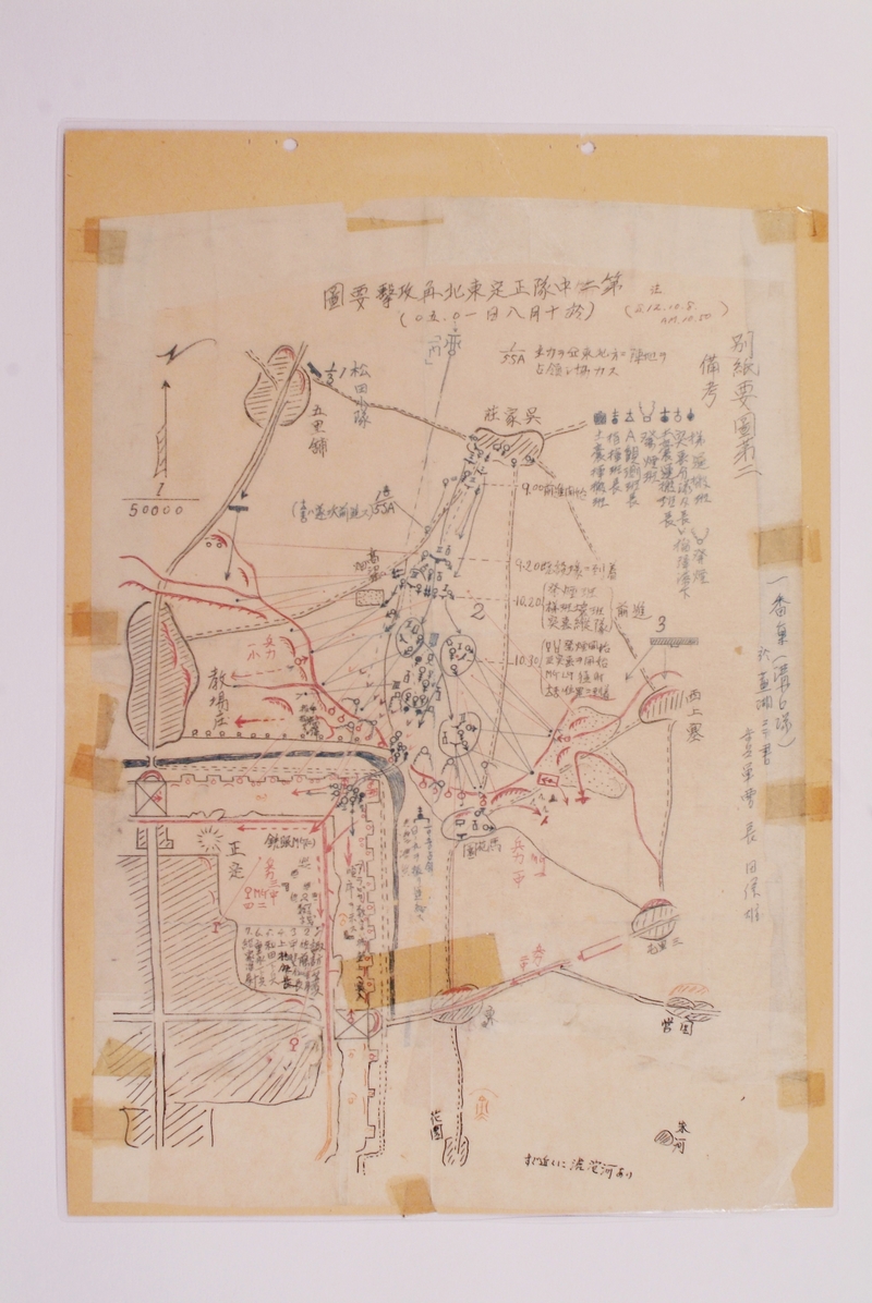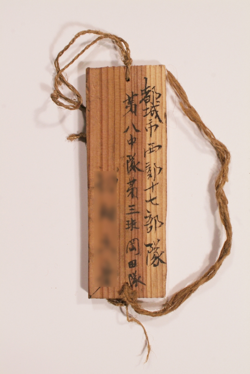 文字サイズ 標準 / 拡大 平和祈念資料展示室 ホーム > 平和祈念資料展示室 > 戦場 戦場 画像をクリックで拡大 備志録 日中戦争時の部隊の行動や戦況等を書いた記録。 画像をクリックで拡大 写真 備志録中に「(昭和14年)九月一日七時渾源出発、吉家庄通過十七時大同着」とあるが、写真はこの日に撮られたもので、最後尾の乗馬している兵士が備志録を書いた人物。 画像をクリックで拡大 正定城攻撃要図 都城歩兵第23連隊第2中隊が中国戦線で作成した攻撃作戦図。 画像をクリックで拡大 認識票 戦死者や重傷者の氏名確認のため、将校は部隊名と氏名、 下士官・兵は中隊番号と個人番号が刻印されていた。形態は ほぼ小判型であるが、作製年代、兵科、所属部隊、素材などで違いが見られる。兵士の間では「靖国神社の入場札」といわれた。 画像をクリックで拡大 荷札 所属部隊、氏名を記した木製の荷札。背のうなどにつけていた。 画像をクリックで拡大 貴重品袋 兵士にとって貴重品であった現金、通帳、印鑑などを入れ、肌身離さず保管させていたもので、袋は各自で購入した。 画像をクリックで拡大 従軍記章 戦地に従軍した軍人・軍属に与えられた記章。この記章は支那事変従軍記章。 画像をクリックで拡大 写真 連隊長と軍旗護衛小隊の写真。 画像をクリックで拡大 軍事郵便葉書 鹿児島の部隊から妻に宛てた葉書。「詳しい内容が書けないが、元気でいる。 秋の取り入れ、子供のことを頼む」と書かれている。 画像をクリックで拡大 軍事郵便 従軍中の息子から父に宛てた手紙。父からの便りで、米の出来が良いことを 知り喜んでいることがわかる。 12> 一覧に戻る
