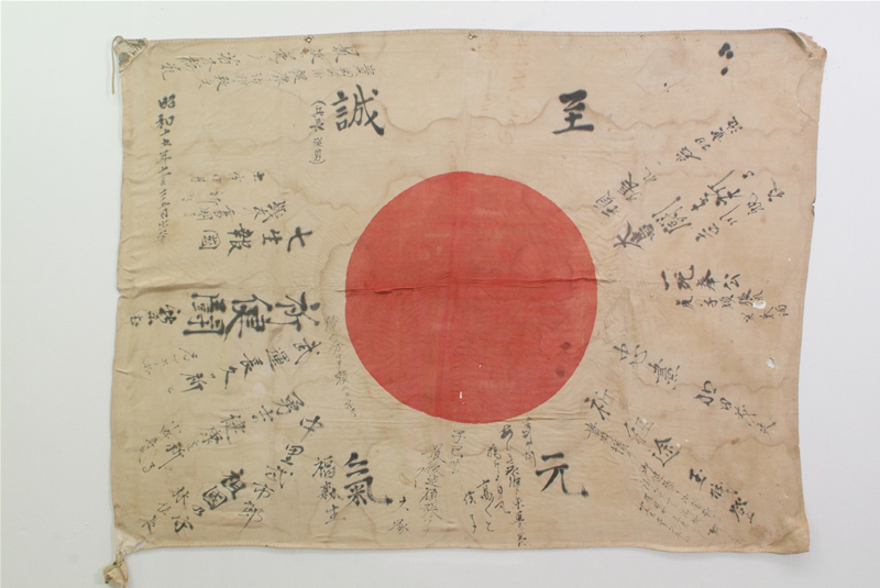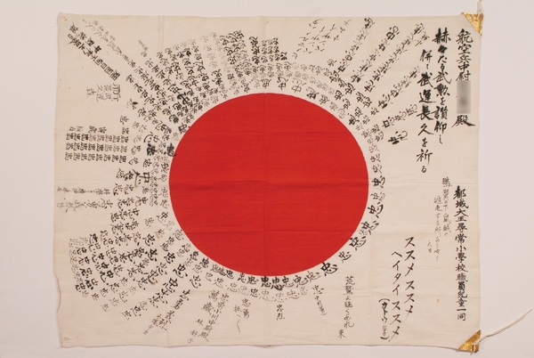 昭和15年11月に出征した兵士に贈られ、元米兵により日本への帰還を果たしたもの。18年11月1日、海兵隊員としてブ-ゲンビル島に上陸した際、日本軍の壕の中で見つけ米国に持ち帰った。戦後、大学教授となり日本の新聞社を通じて遺族への返還を希望していたところ、寄せ書きが手がかりとなり遺族が判明した。