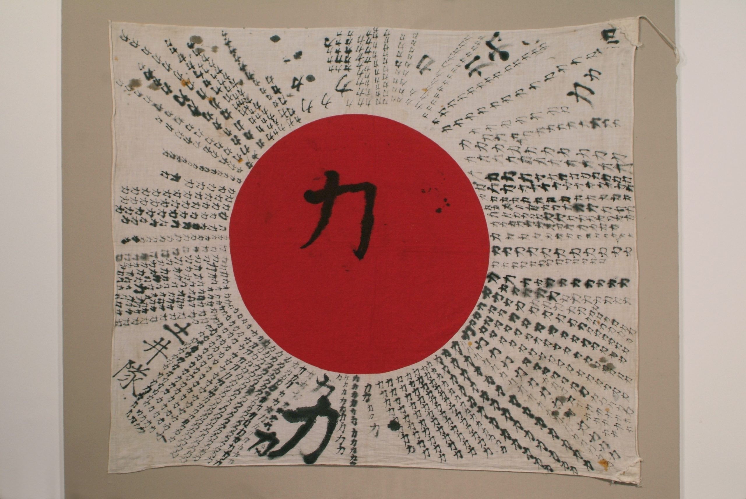 文字サイズ 標準 / 拡大 平和祈念資料展示室 ホーム > 平和祈念資料展示室 > 千人力 千人力 千人針と同じく日露戦争のころに始まったと言われる。兵士が戦場で活躍するため、自分の「力」を貸すという意味で、男性一人一人が「力」の文字を日章旗に寄せ書きしたもの。千人針と比べ、現在ではほとんど残っていない。 画像をクリックで拡大 千人力 入営時、瓜生野村(宮崎市)の男性たちにより作られ贈られたもの。 一覧に戻る