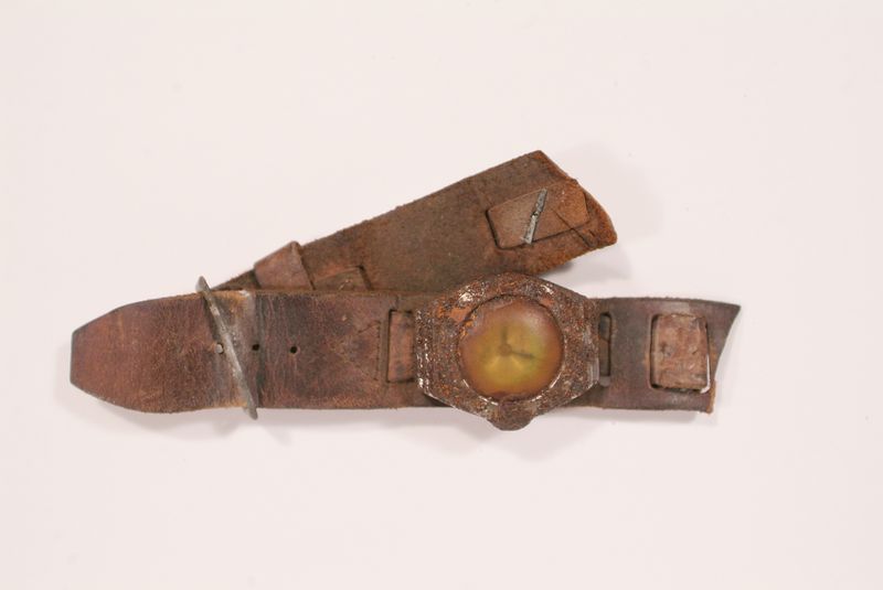 生き残った戦友が腕時計のベルトを切断し、遺品として妻のもとへ送ってくれた。